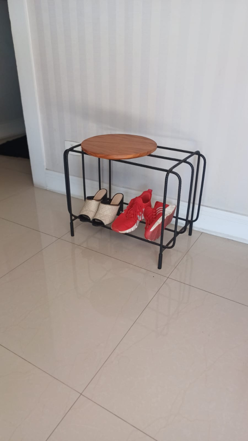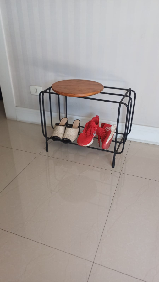 Prateleira para Sapatos Multiuso, acento de peroba rosa, pintura eletrostática.