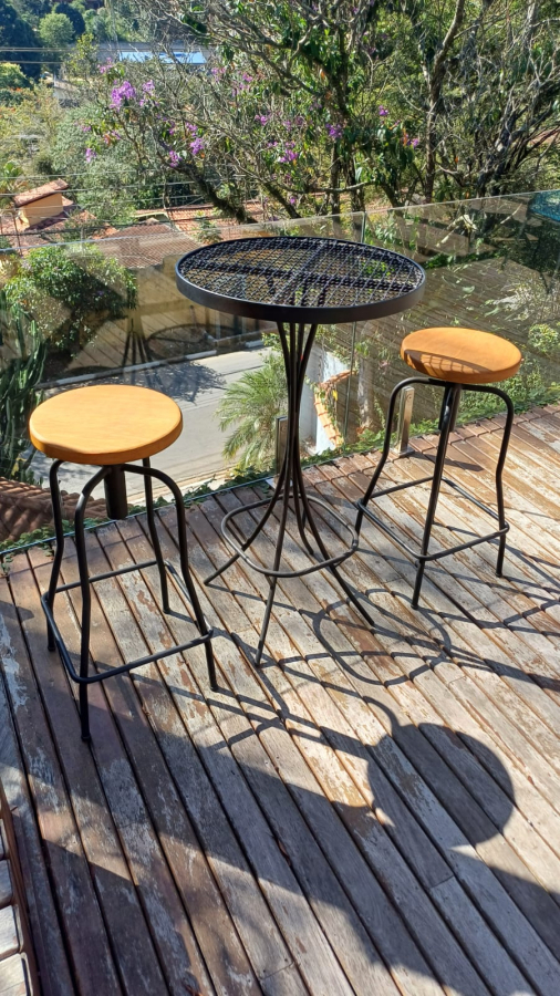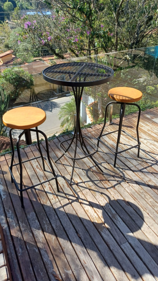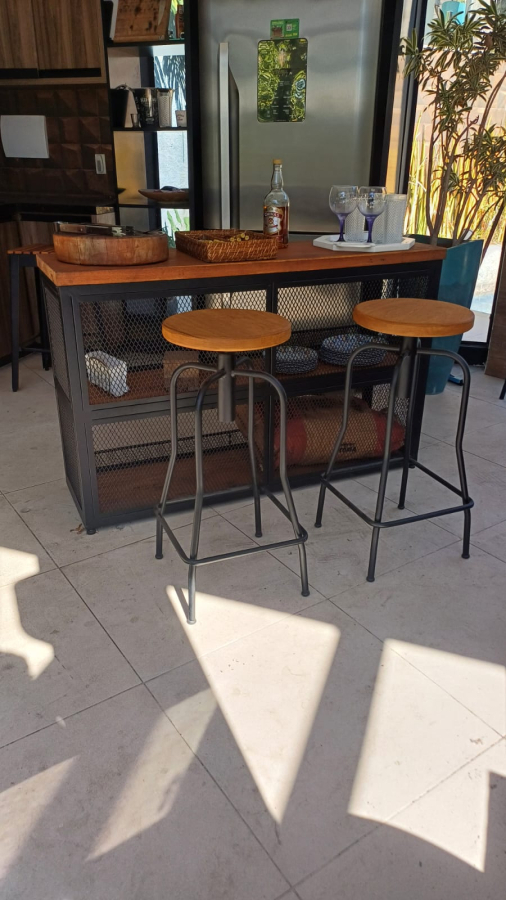 Aço carbono, pintura eletrostática,acento redondo de Peroba Rosa, com regulagem de altura.