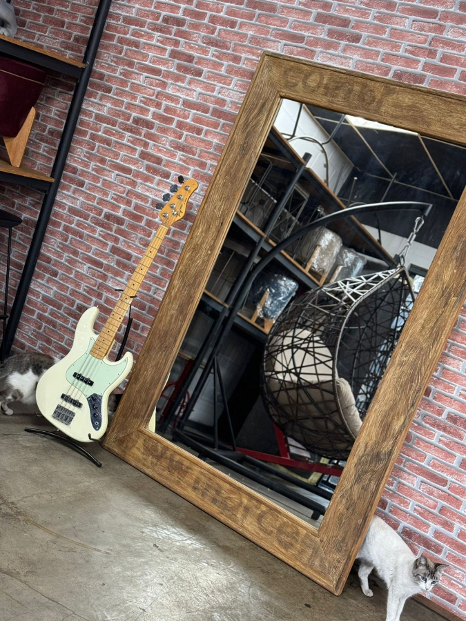 Espelho com moldura em madeira de Demolição.